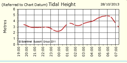 In mid Channel waves built up to 5 metres high. At Chichester harbour entrance, in the lee of the Isle of Wight, waves of 2.3metres were recorded.Using Solent Now on our website we were able to monitor the progress of the storm