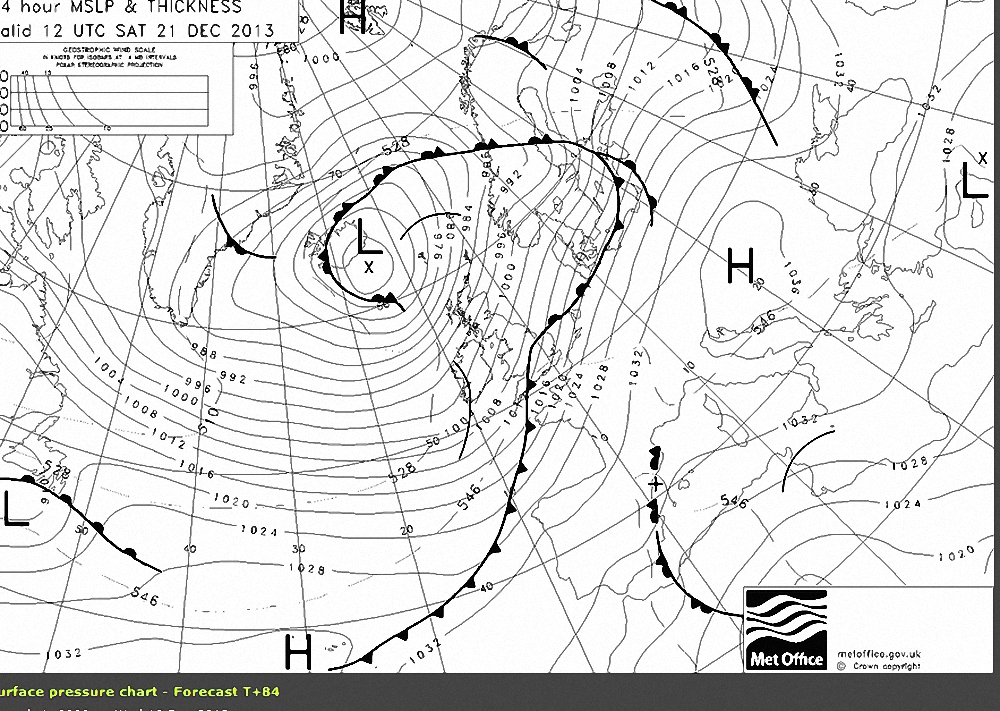 At midnight on the morning of Wednesday 18th December, the pressure over Iceland dropped to 947 millibars, an incredibly low figure. Tonight it is forecast to be 948 millibars as the depression approaches Shetland