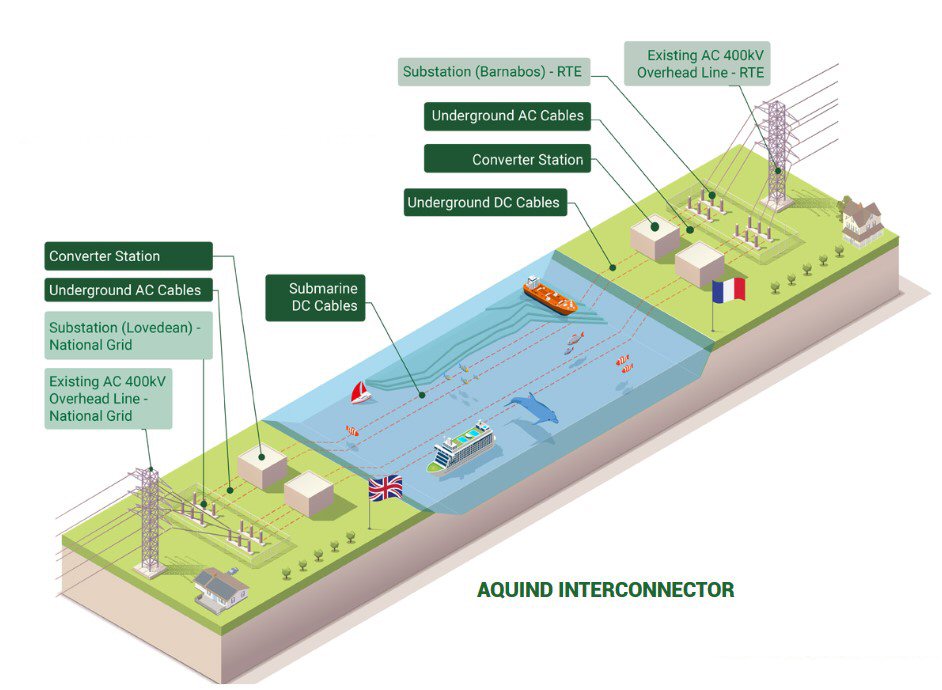 AQUIND Interconnector is a new subsea and underground High Voltage Direct Current (HVDC) electric power transmission link between the South Coast of England and Normandy in France. This proposal sees a new interconnector cable coming ashore at Eastney and being routed via underground trenches through the road system of Portsmouth to a new Converter Station at Lovedean. For further details, please refer to the AQUIND Consultation website.