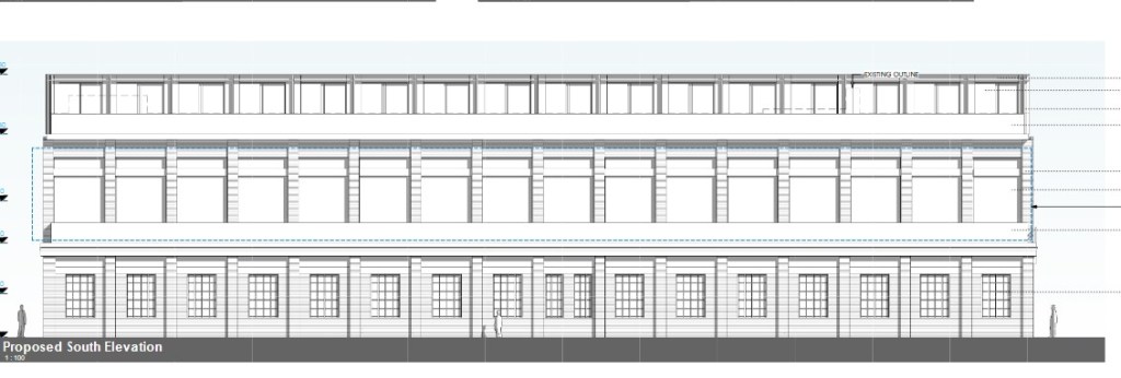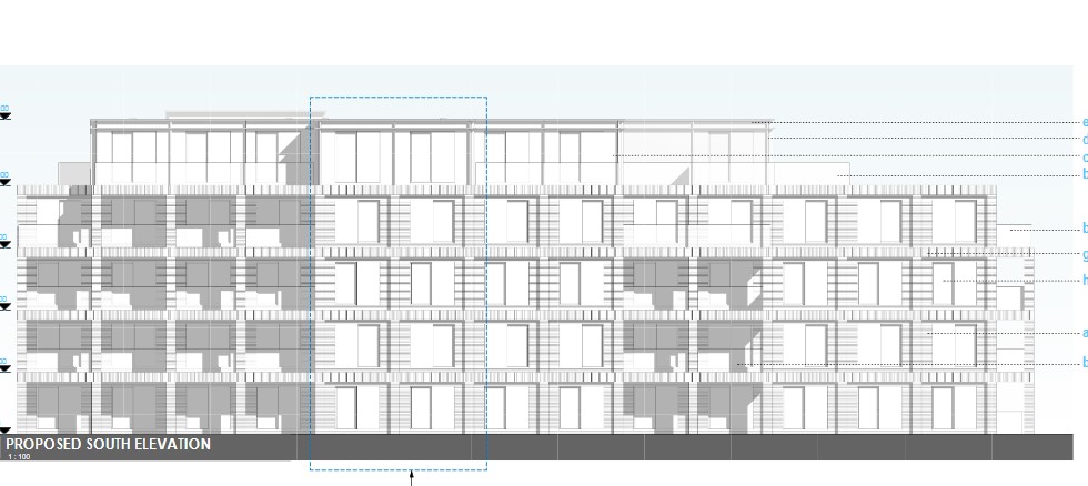 Building 2 and Building 5 are existing two storey structures with flat roofing which includes small covered service access structures. We do not consider that these existing roof structures provide a precedent for the addition of a full third storey that the developer has added to each of these buildings.