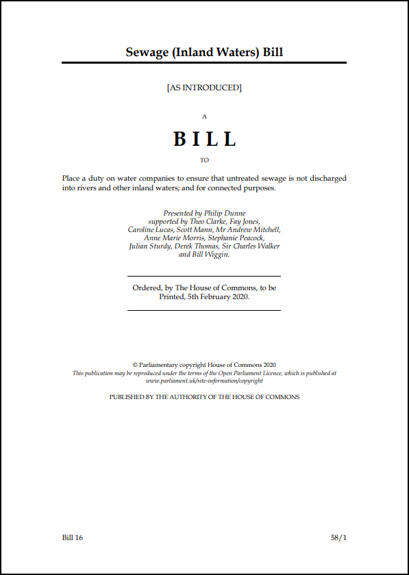 It is therefore timely that we focus on the Philip Dunne’s Private Member’s Bill, the Sewage (Inland Waters) Bill, which receives its second reading in the House of Commons on January 15.