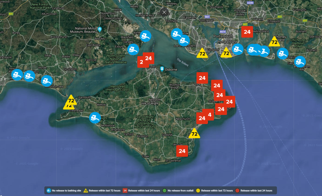 It’s worth noting that the definition of a ‘bathing beach’ is helpfully somewhat stretched. For example, both Langstone Harbour and Chichester Harbour have icons within them, selection of which helpfully displays the surrounding combined sewer outfalls. Given that precedent we will be working with our contacts at Southern Water to seek similar coverage for Portsmouth Harbour, Southampton Water and the main estuaries of the Western Solent.