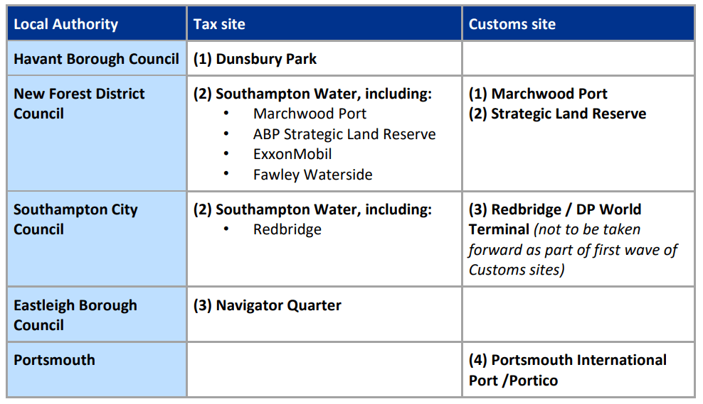 UK Government Publications – Solent Freeport tax sites