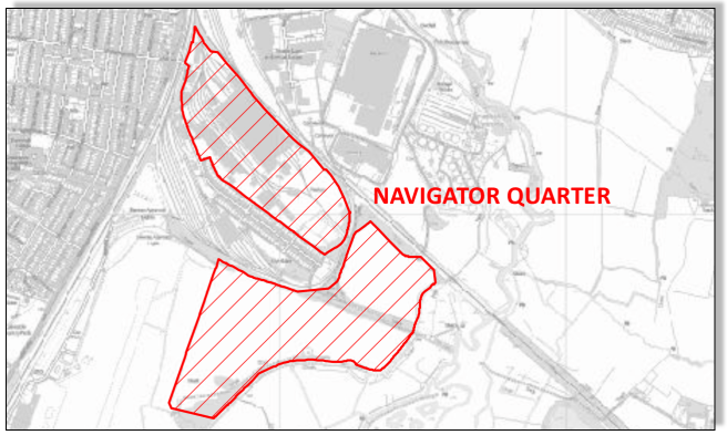 The detailed map of the ‘Navigator Quarter’ tax site has not yet been published by HMRC, but its boundaries can be viewed in the image above. The northern part of the site is ‘brownfield’, re-using the former Eastleigh Works rail site at the northern end of Southampton Airport’s runway. The southern part of the tax site occupies ‘greenfield’ space linking the Eastleigh Works directly to the eastern perimeter of the airport.