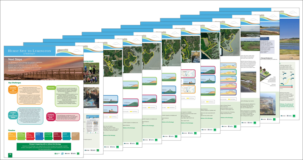 The public information boards explaining the Draft Adaption Pathways for the Hurst Spit to Lymington project can be viewed by clicking the image below. The detail will be presented as a large PDF file in a separate browser window, showing the detailed printed information from all twelve boards. Depending on your speed of connection, this may take a short time to load.