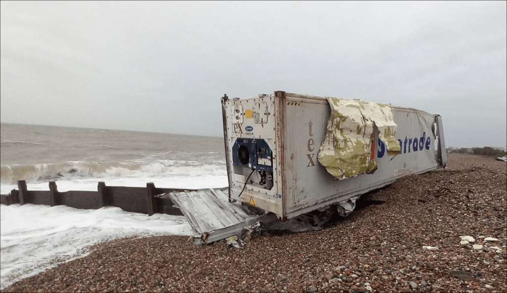 We will have to wait for the Marine Accident Investigation Board to understand the root cause of this container spillage, but a first indication has come from the vessel’s owner, Seatrade Group. In an early comment on the incident, the company’s spokesman, Cor Radings, stated that: “She started rolling while she was heading for Portsmouth on Saturday [6 December] and that resulted in the loss of 16 boxes, five of which are empty.”